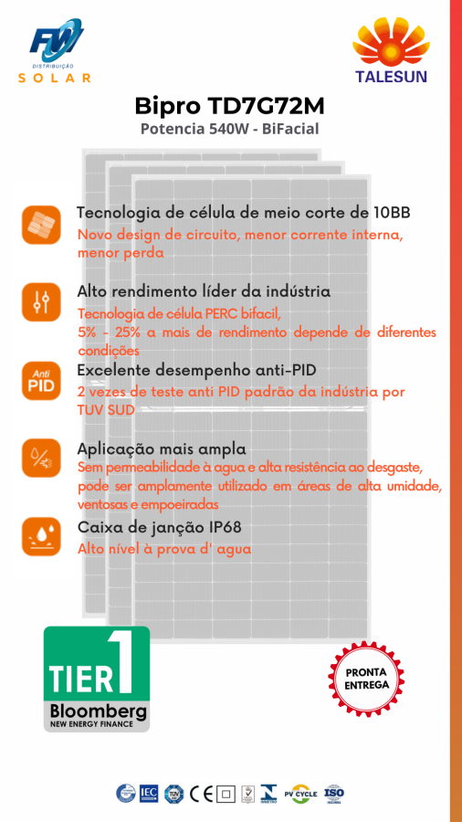 Potência do Painel:535 Wp