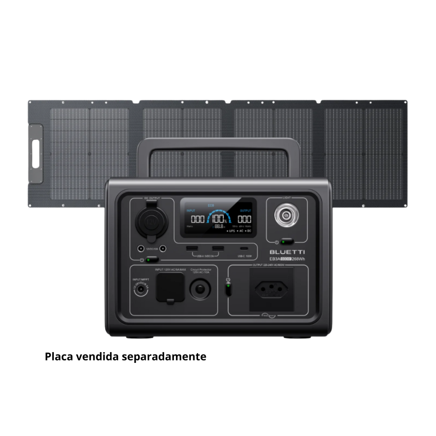 Solar (200 W):≈1,8-2,0 horas (com sol forte, orientação ideal e baixa temperatura)